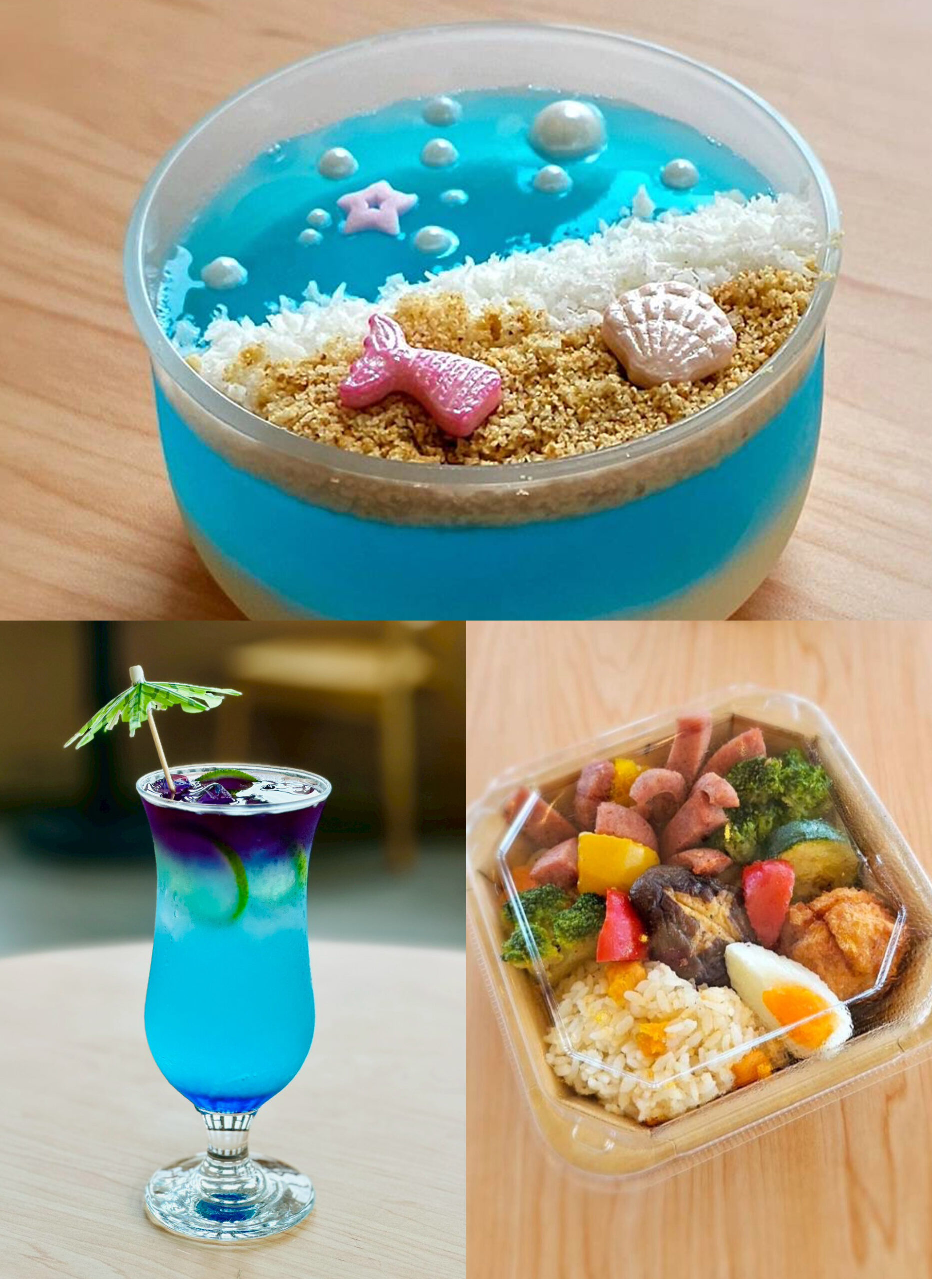 藍海沙灘杯,藍色澄澈果凍如同大海,上層綿密如浪花、